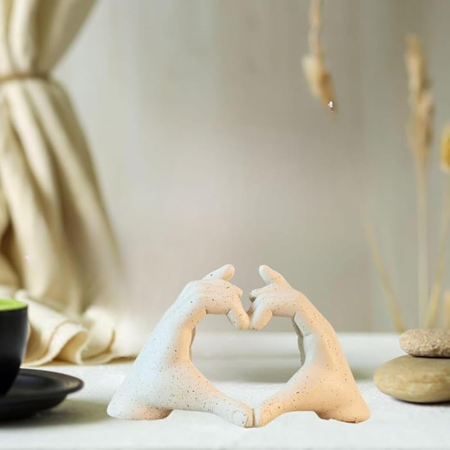 ABHIYAM Heart-Shaped Hand Sculpture – Starry Black Resin Decor