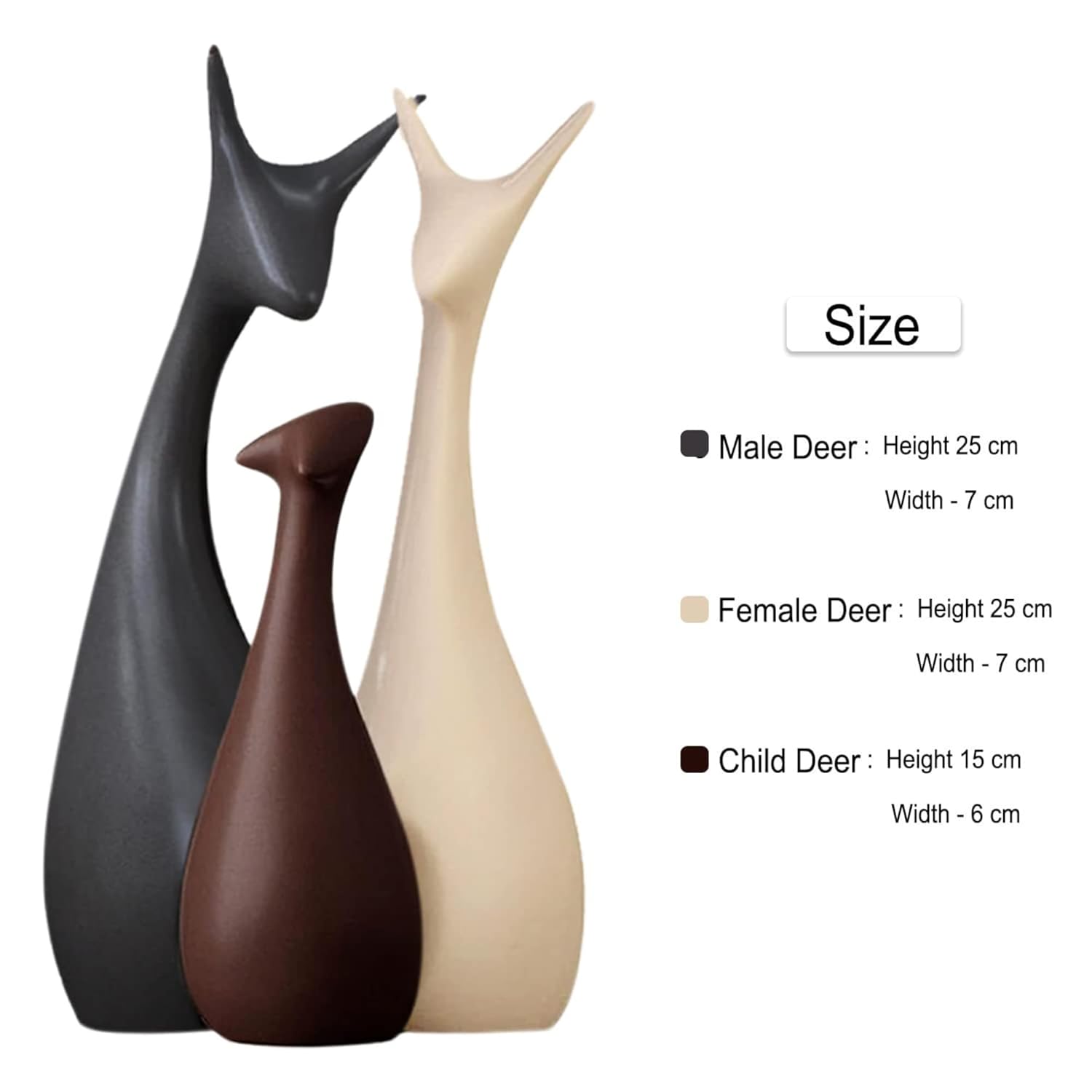 Add charm and elegance to your space with this beautifully crafted ceramic deer family set. Each piece showcases timeless craftsmanship with graceful lines and intricate detailing, perfect for enhancing living rooms, mantels, shelves, or tabletops.