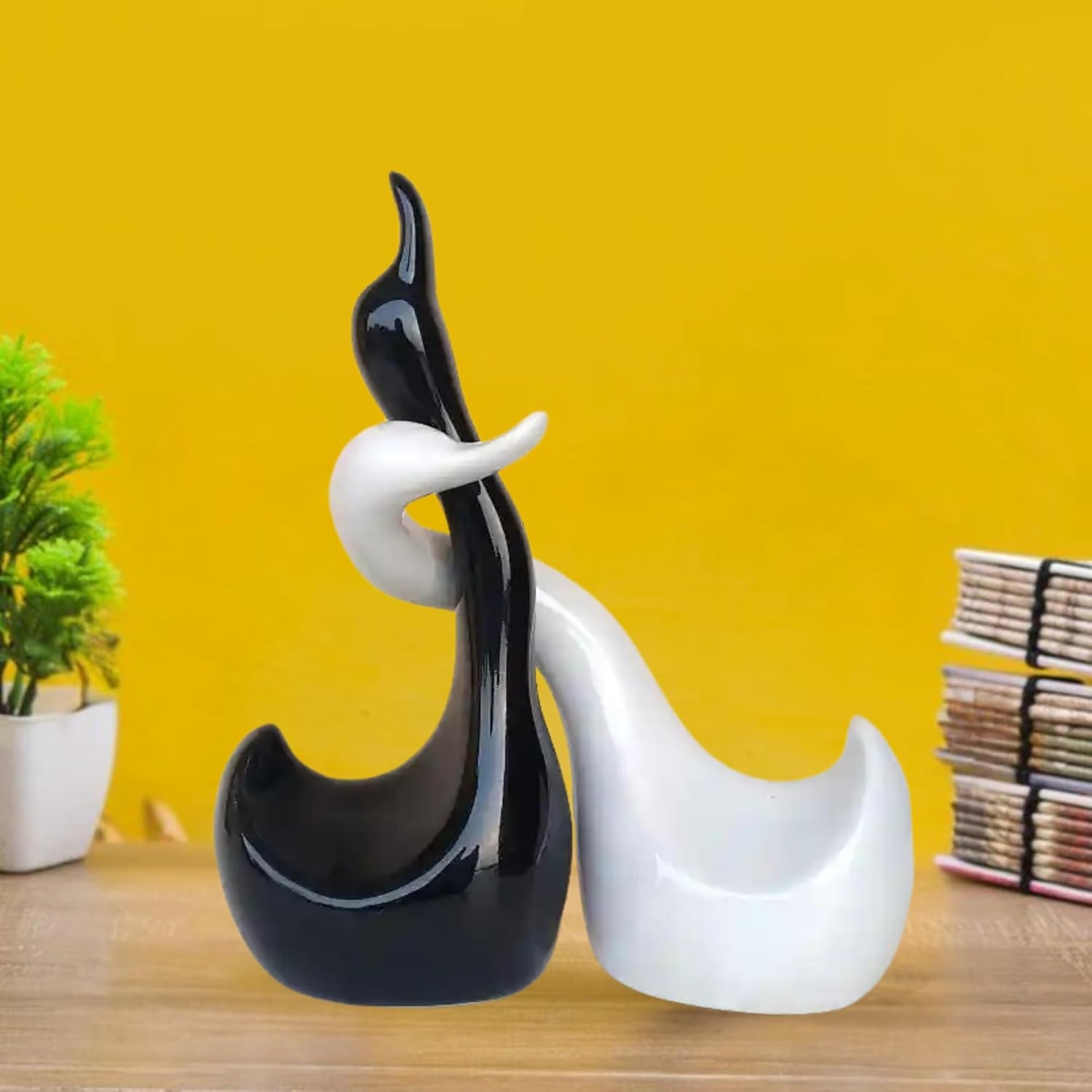 Loving Hugging and Handmade Ceramic Swans in Black and White