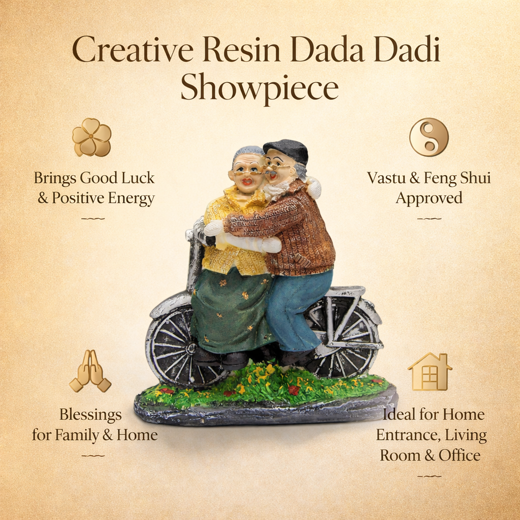Dada-Dadi Romantic Couple Miniature Grandparents on Cycle Statue Showpiece